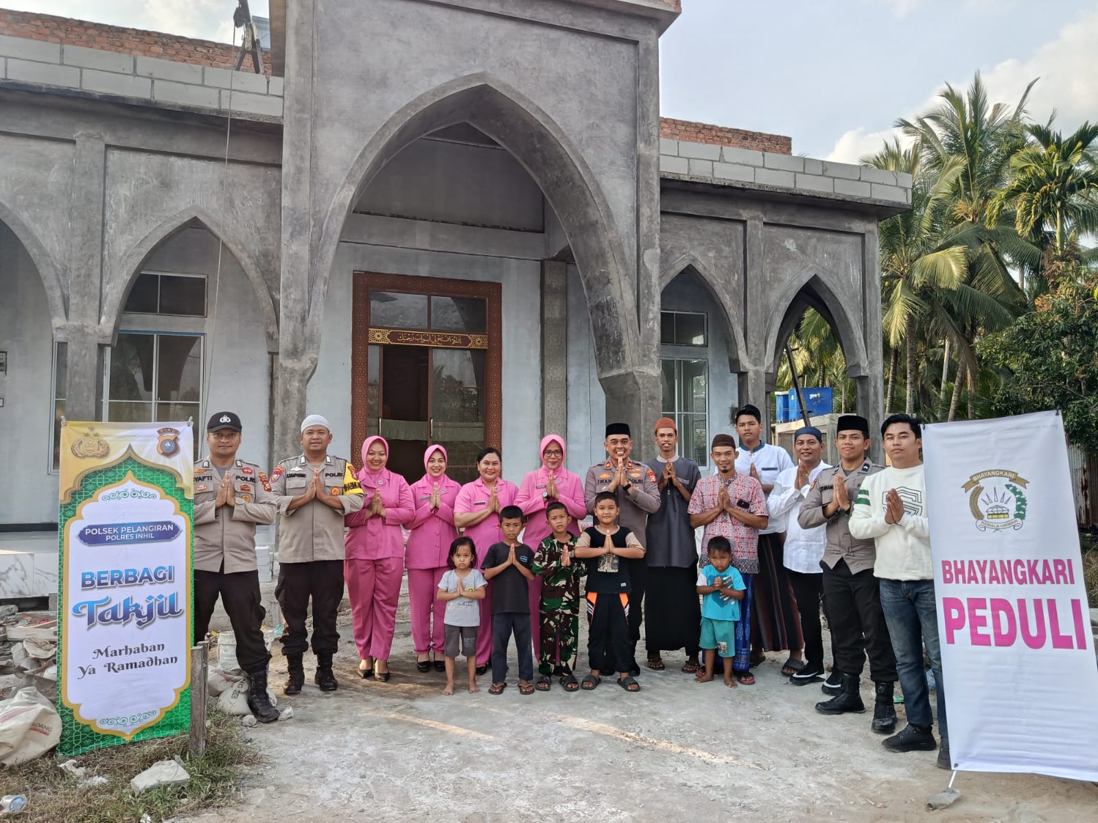 Turut hadir dalam kegiatan tersebut Pengurus Mushalla Baiturrahman Sdr. RUDI, para Kanit Polsek Pelangiran, pengurus Bhayangkari Ranting Pelangiran, serta personel Polsek Pelangiran. Kehadiran unsur kepolisian dan Bhayangkari ini menunjukkan kekompakan serta komitmen dalam mendukung kegiatan sosial kemasyarakatan.