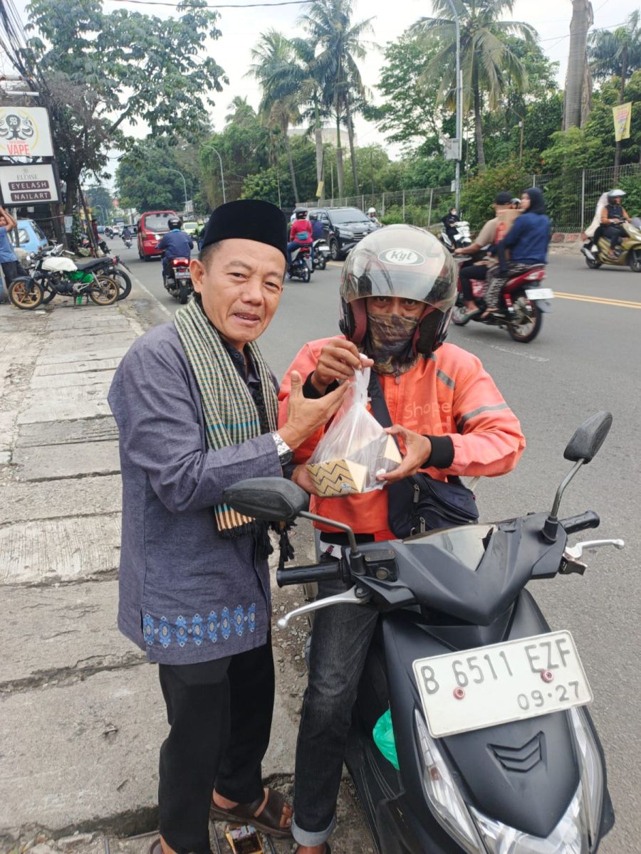 "Alhamdulillah, terima kasih kepada bapak ibu. Ini sangat membantu kami yang sedang di perjalanan," ujar salah seorang pengendara yang mengenakan jaket Ojek Online (OJOL) yang menerima takjil.