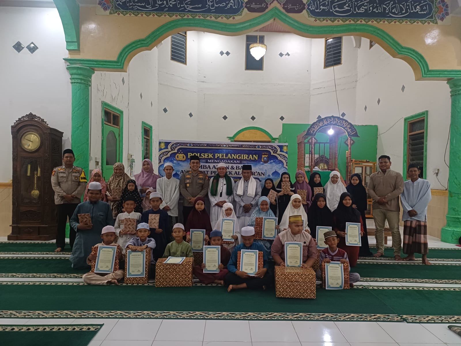 Kapolsek Pelangiran, Iwan Saputra, dalam sambutannya menyampaikan apresiasi kepada seluruh peserta yang telah menunjukkan semangat belajar dan mencintai Al-Qur’an sejak usia dini. Ia juga mengucapkan terima kasih kepada panitia serta pengurus masjid yang telah mendukung terselenggaranya kegiatan tersebut dengan baik.
