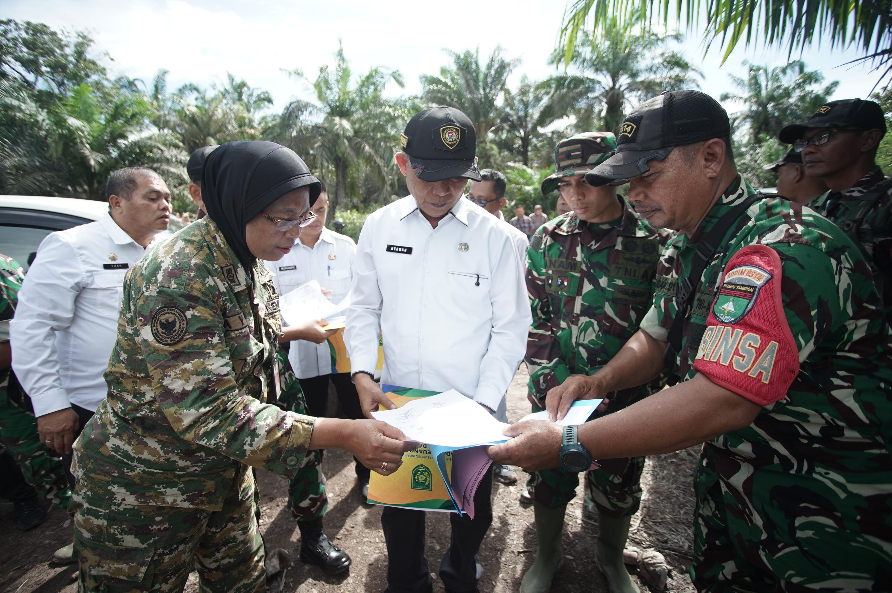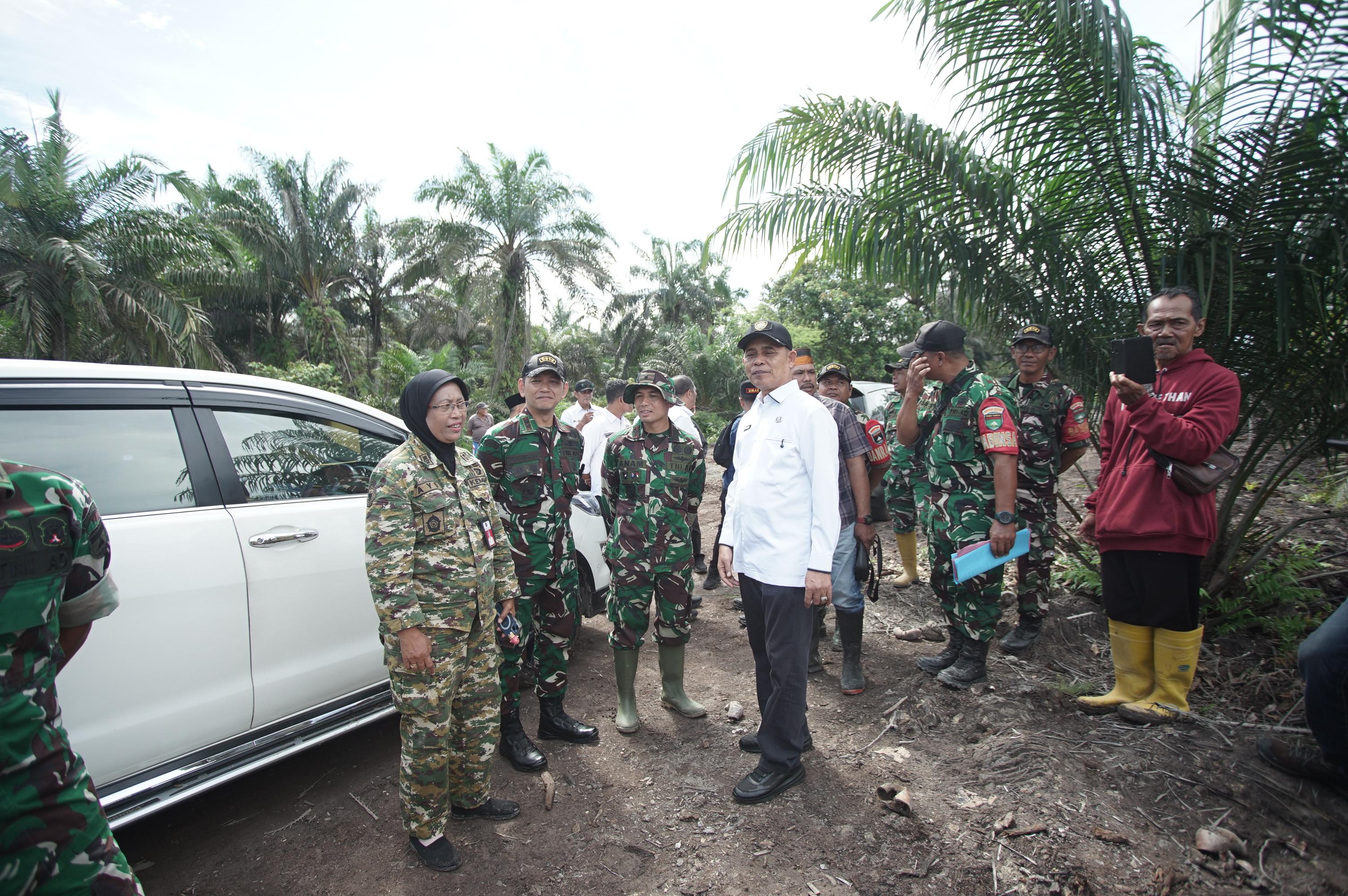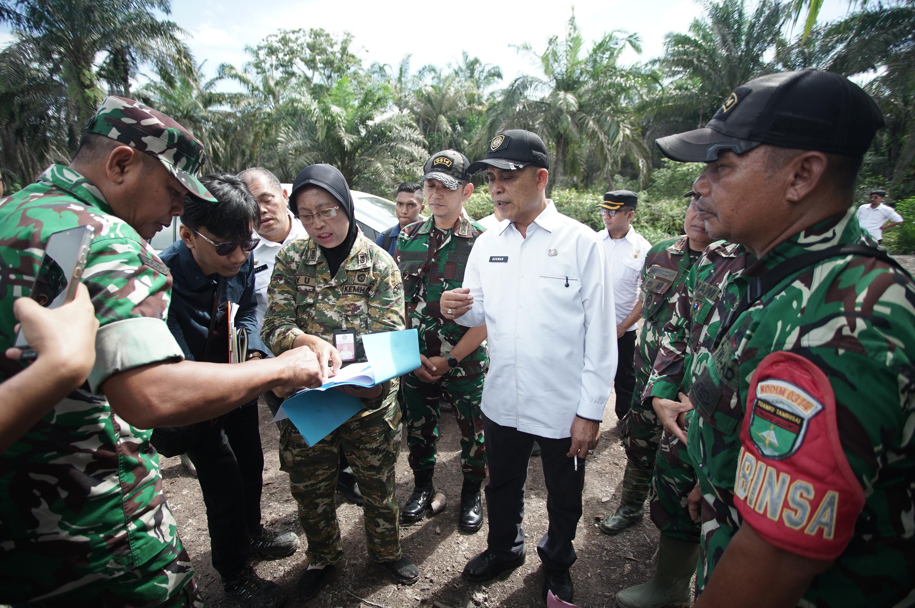 Dalam peninjauan tersebut, rombongan melihat langsung kondisi lahan yang akan digunakan sebagai lokasi pembangunan Yon TP 953/Harimau Rawa.