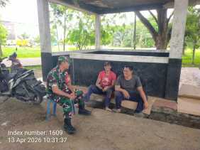 TEMBILAHAN – Babinsa Koramil 01/Tbh Kodim 0314/Inhil, Serma Nuryadi, melaksanakan kegiatan pembinaan teritorial (Binter) melalui pendekatan sosial kemasyarakatan. Kegiatan ini dilaksanakan pada hari Senin, 13 April 2026, bertempat di Jalan Yos Sudarso, Tembilahan Kota, Kabupaten Indragiri Hilir (Inhil).