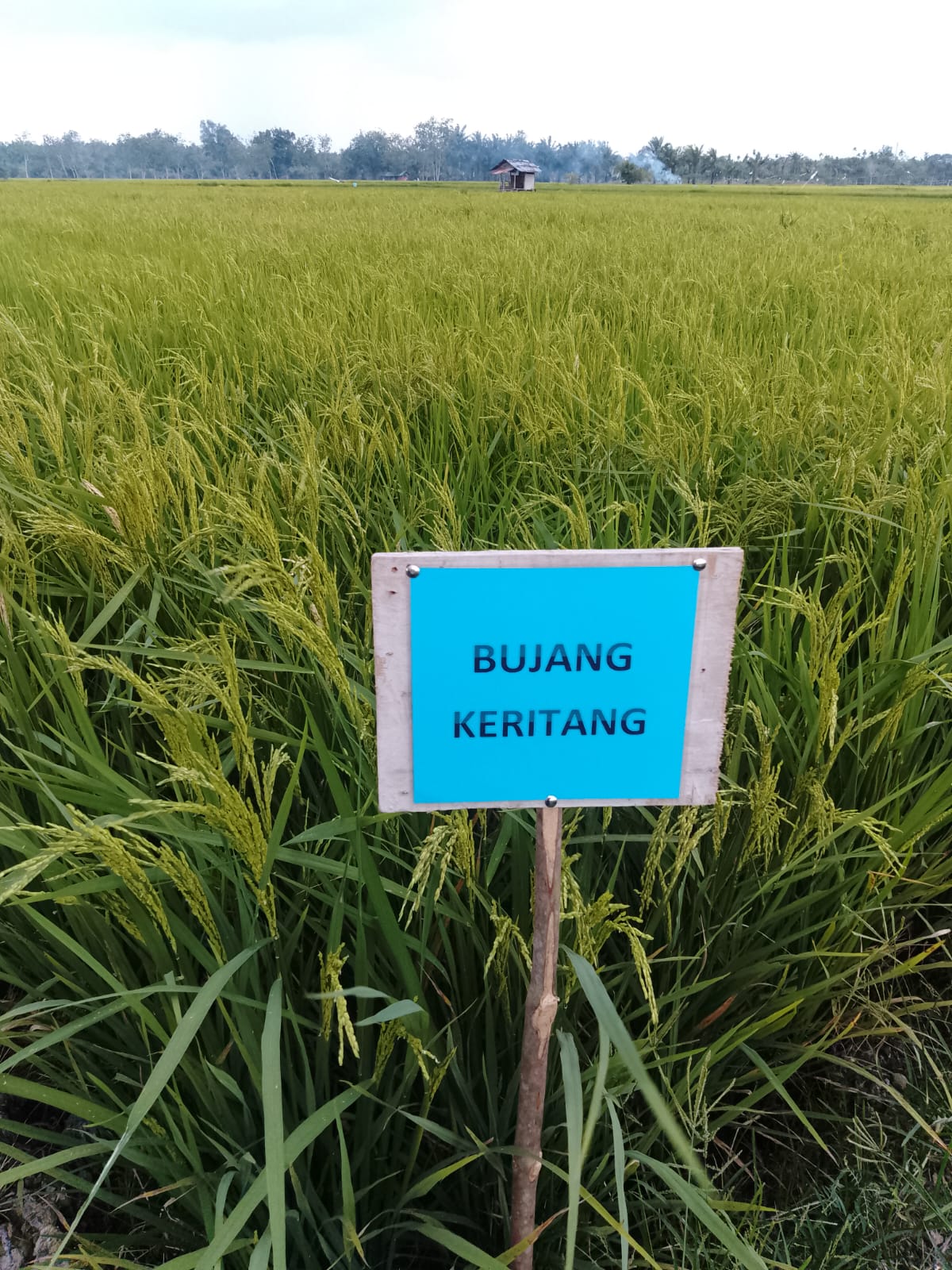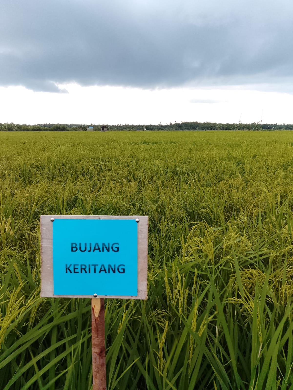 Lahan penangkar ini ditanami dua jenis varietas unggul, yaitu varietas Bujang Keritang dan Inpari 32 HBD. Untuk varietas Bujang Keritang yang ditanam pada tanggal 27 Desember 2025, saat ini diprediksi sudah memasuki fase pemasakan dan akan siap panen dalam waktu sekitar 20 hari ke depan.
