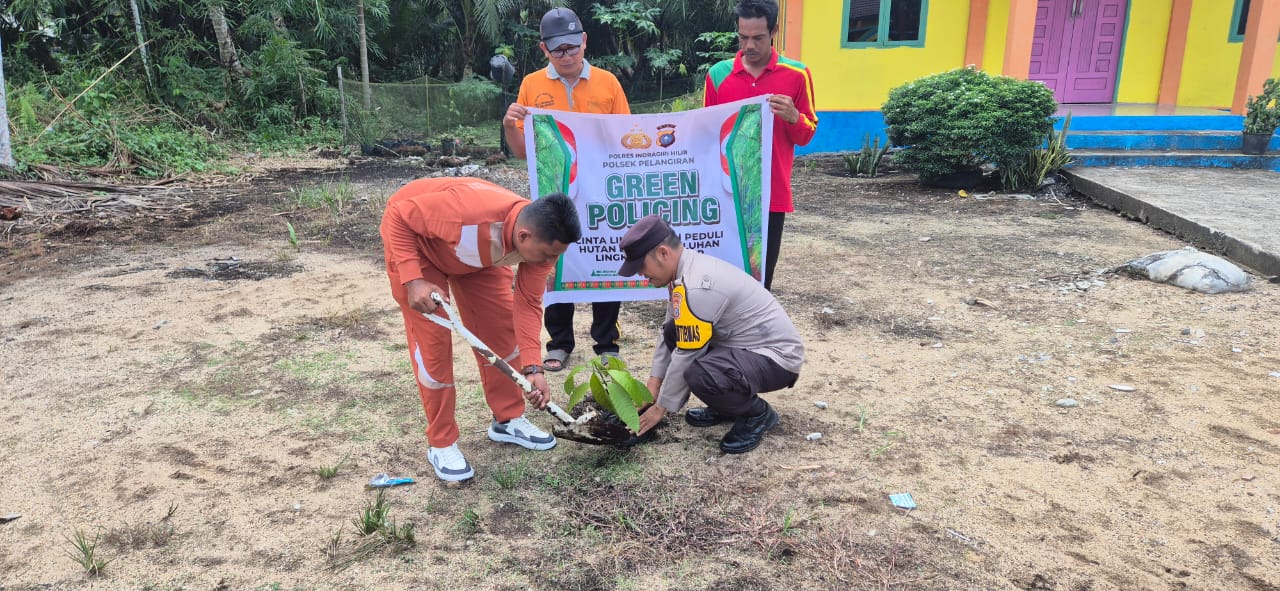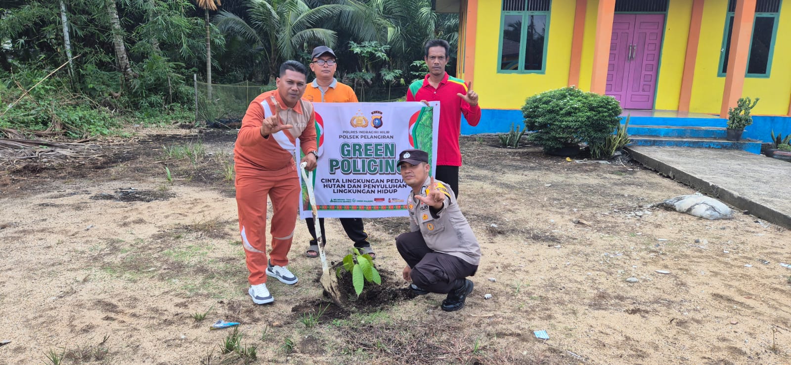 Pelangiran – Dalam rangka mendukung program Kapolda Riau tentang "Workshop Green Policing", Polresta Indragiri Hilir melalui Polsek Pelangiran melaksanakan kegiatan penanaman pohon dan penyuluhan lingkungan hidup. Kegiatan yang berlangsung pada Senin, 20 April 2026, pukul 09.00 WIB ini bertempat di halaman Kantor Desa Wonosari, Kecamatan Pelangiran, Kabupaten Indragiri Hilir. Aksi nyata ini merupakan bentuk komitmen Polri dalam melestarikan lingkungan sekaligus membangun kesadaran masyarakat akan pentingnya menjaga alam sejak dini.
