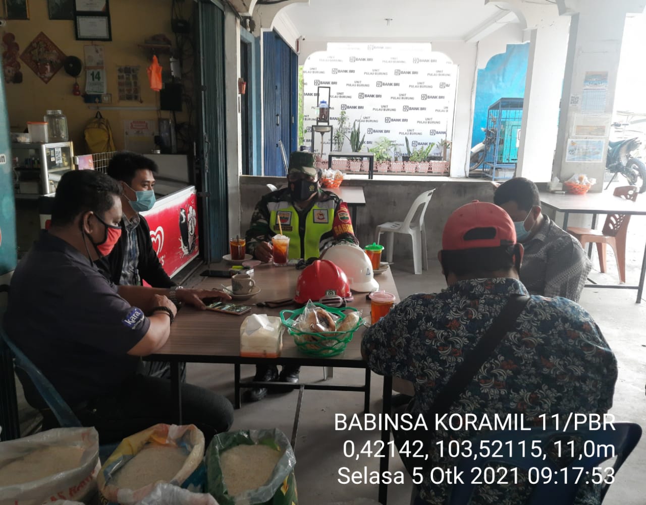 Sertu Yanuarsyah Babinsa Koramil 11/Pulau Burung Laksanakan Koordinasi dan pertemuan Selasa (05/20/2021).