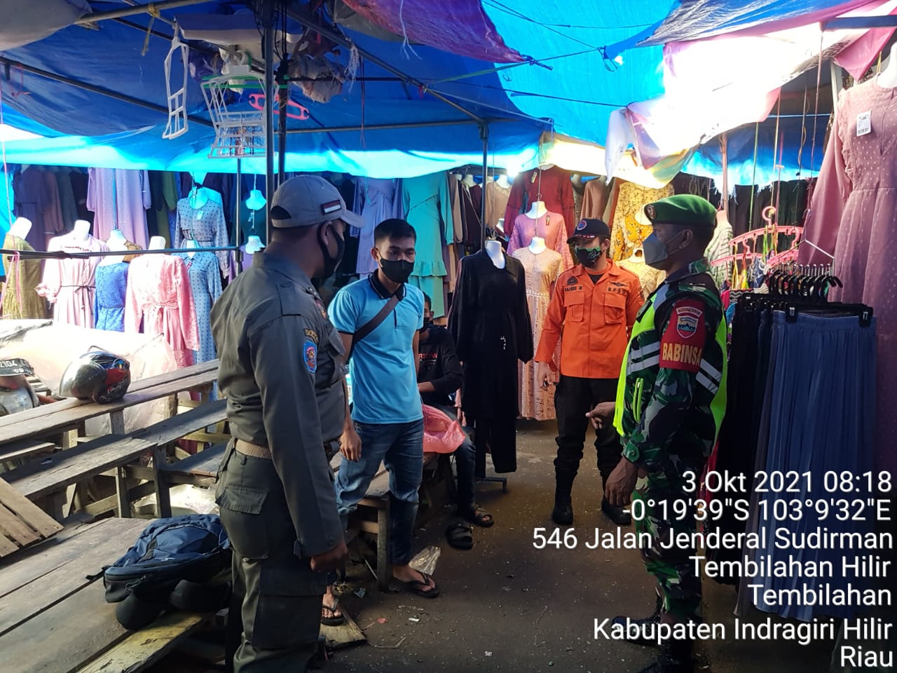 SERIBUPARITNEWS.COM,TEMBILAHAN - Kopda Komarudin Babinsa Koramil 01/Tembilahan Kodim 0314/Inhil melaksanakan Penegakan Disiplin di Pasar Pos Air Mancur Sabtu (03/10/2021)