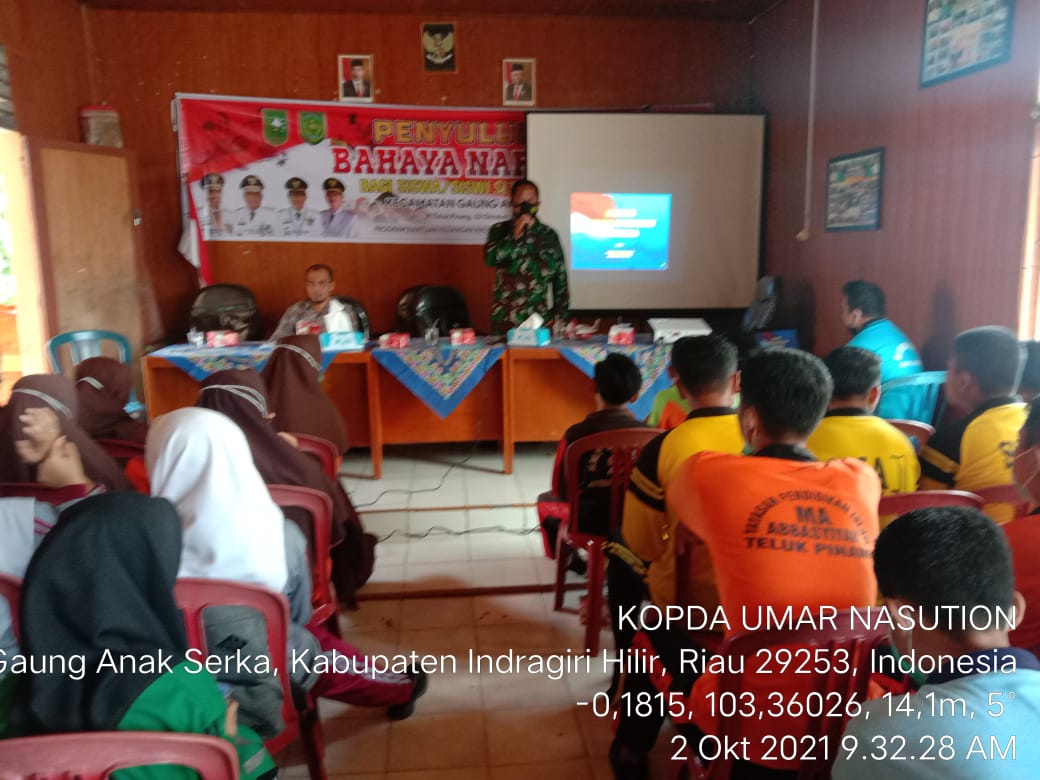 Danramil 05/Gas , Lettu Selamet H.Melaksanakan Sosialisasi Bahaya Narkoba kepada Siswa/Siswi Sekolah di Kelurahan Teluk Pinang Sabtu (02/10/2021)