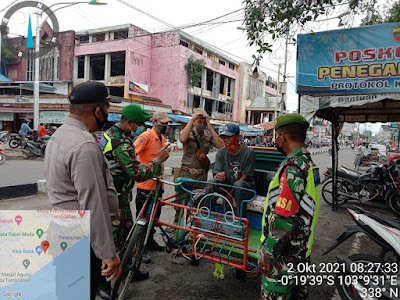 SERIBUPARITNEWS.COM,TEMBILAHAN - Sertu M.Yasin   Babinsa Koramil 01/Tembilahan Kodim 0314/Inhil  melaksanakan Penegakan Disiplin di Pasar  Pos Air Mancur Sabtu  (02/10/2021)