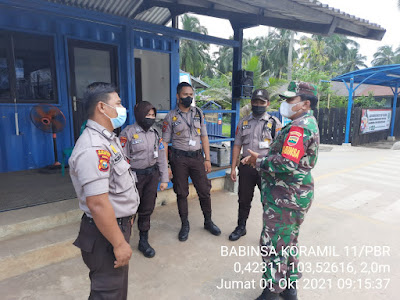Sertu Yanuarsyah Babinsa Koramil 11/Pulau Burung Cek Kesiapan Security Perusahaan dalam Penegakkan Disiplin dlm Rangka Pemeriksaan Kesiapan dan Arahan kepada Security untuk Melaksanakan Penegakkan Disiplin bagi Karyawan Setiap Hari Keluar dan Masuk Perusahaan Jumat (01/10/2021)