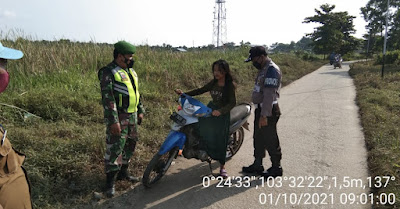 SERIBUPARITNEWS.COM, PULAUBURUNG - Di Masa PPKM Babinsa Koramil 11/Pulau Burung  Serda Siswanto   bersama Tim  Gugus Tugas Covid-19 Kecamatan melaksanakan Kegiatan Penegakkan Disiplin Protokol Kesehatan Covid-19 Jumat   (01/10/2021)