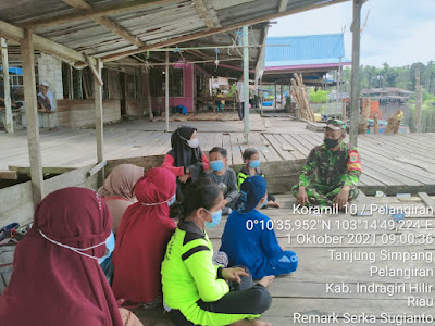 SERIBUPARITNEWS.COM, PELANGIRAN - Sebagai upaya dalam penegakkan disiplin, Babinsa 10/Pelangiran Serka Sugianto melaksanakan Komsos dan Himbauan Protokes Kepada warganya   Jumat (01/10/2021)