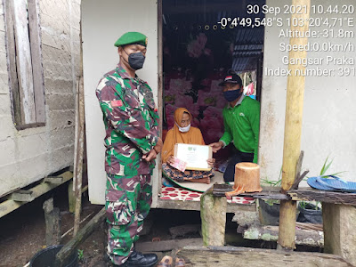 SERIBUPARITNEWS.COM, GAUNG  - Sebagai bentuk dukungan Apter dalam serbuan Vaksinasi  distribusi bansos kepada warga  di wilayah Kecamatan Gaung  , Babinsa Koramil 05/Gas, Praka Gangsar melaksanakan pendampingan Penyaluran Bansos secara langsung  di Desa  Lahang Tengah  Kecamatan Gaung Kamis   (30/09/2021)