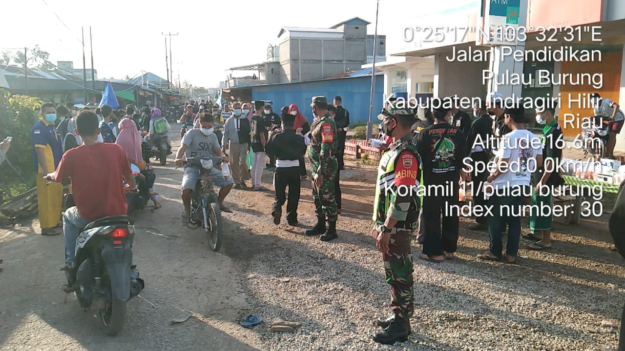 SERIBUPARITNEWS.COM,PULAUBURUNG - Sebagai Bentuk Partisipasi Apter dalam penegakkan disiplin Babinsa Koramil 11/Pulau Burung Kodim 0314/Inhil Serda Suratno bersama Tim Gugus  melaksanakan Penegakkan Disiplin Protokol Kesehatan Rabu  (30/09/2021)
