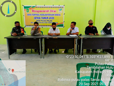 Pemerintah Desa Pulau Palas Kecamatan Tembilahan Hulu melaksanakan Musyawarah Desa terkait Data Terpadu Kesejahteraan Sosial (DTKS) Tahun 2021 Rabu (29/09/2021)