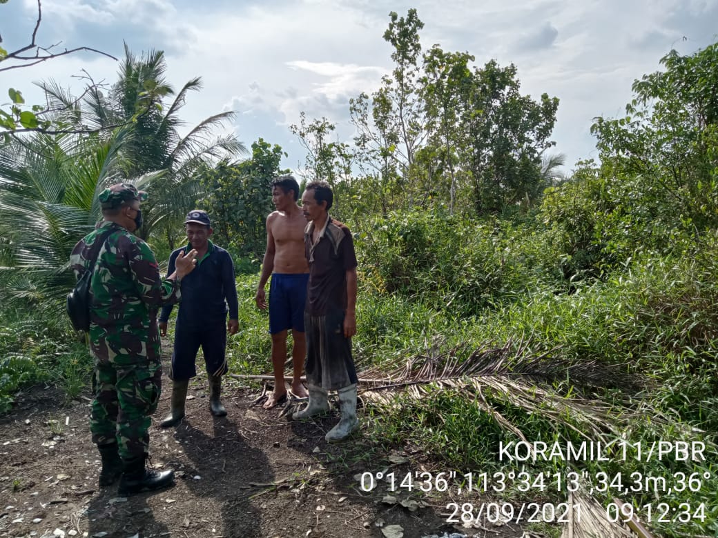 SERIBUPARITNEWS.COM, PULAUBURUNG - Sebagai Upaya pencegahan Kebakaran Hutan dan lahan dan Upaya sosialisasi kepada warga, Babinsa Koramil 11/Pulau Burung Kodim 0314/Inhil Kopda Hermansyah dan warga setempat melaksanakan kegiatan  patroli dan sosialisasi karhutla secara rutin Selasa  (28/09/2021)