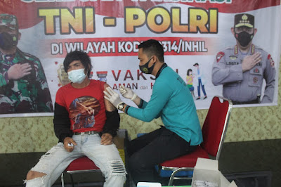 Dandim 0314/lnhil Letkol lnf lmir Faishal melalui Pasi Ops Kapten lnf Tarmizi mengatakan hari ini Kodim 0314/lnhil kembali melakukan Vaksinasi dosis ll dengan menargetkan sebanyak 200 dosis Vaksin sesuai dengan data vaksin tahap ke 1 kemarin.