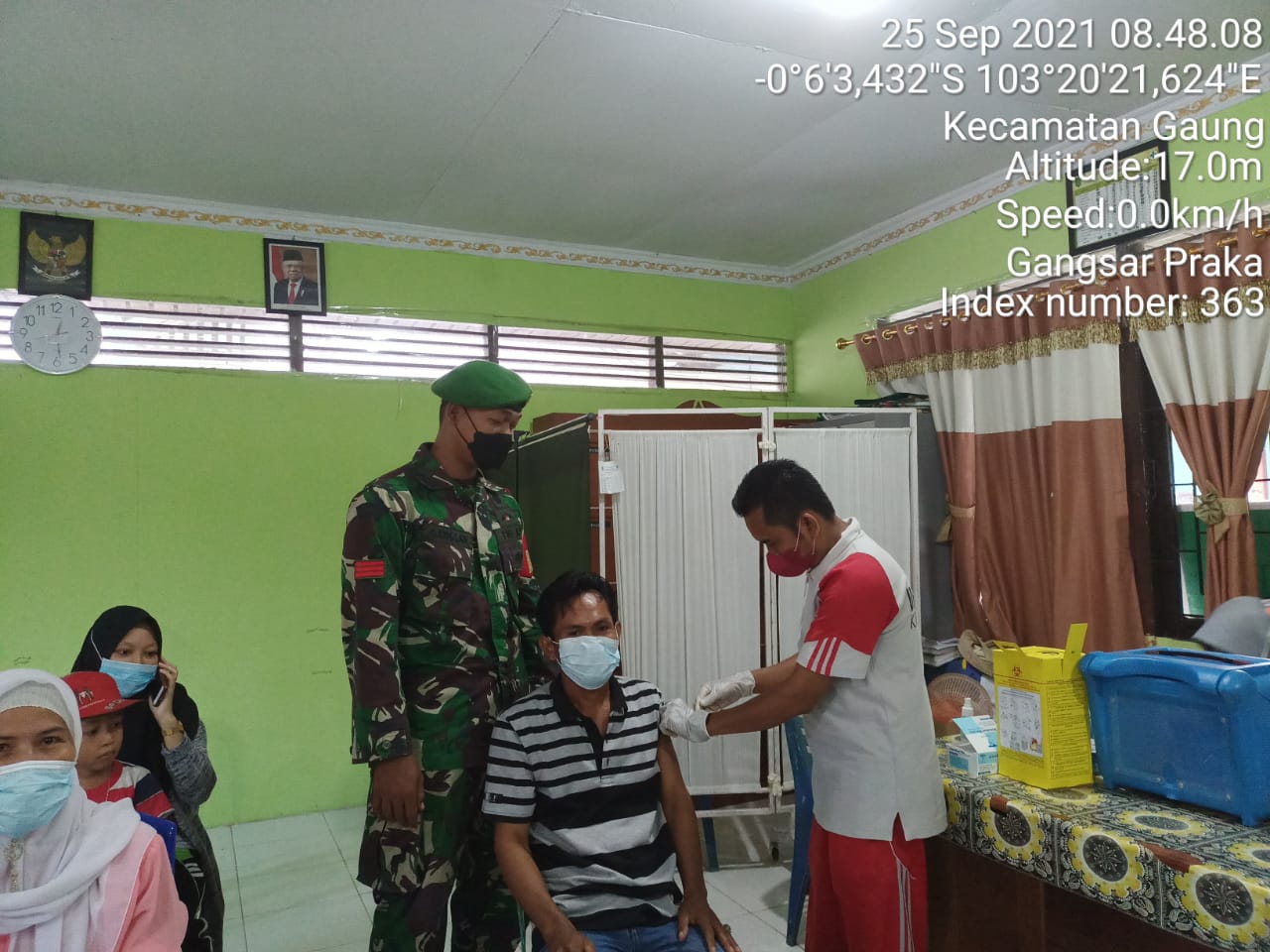 SERIBUPARITNEWS.COM, GAUNG - Serbuan Vaksinasi terus dilakukan sebagai bentuk pencegahan terhadap Covid -19 , Babinsa Koramil 05/Gas, Praka Gangsar melaksanakan pendampingan vaksinasi lanjutan di Kelurahan Kuala Lahang Kecamatan Gaung Sabtu (25/09/2021)