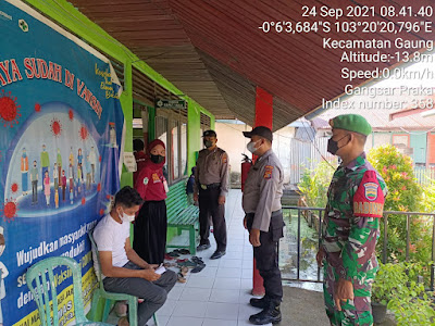 SERIBUPARITNEWS.COM, GAUNG  - Sebagai bentuk dukungan Apter dalam serbuan Vaksinasi  pencegahan terhadap covid-19 di wilayah Kecamatan Gaung  , Babinsa Koramil 05/Gas, Praka Gangsar melaksanakan pendampingan vaksinasi lanjutan di Kelurahan Kuala Lahang Kecamatan Gaung Jumat   (24/09/2021)