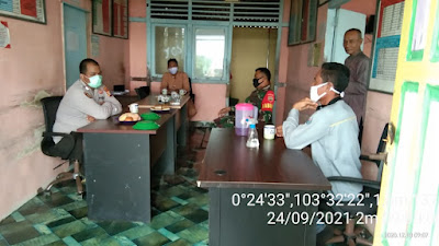 Serda Siswanto Babinsa Koramil 11/Pulau Burung Kodim 0314/Inhil Melaksanakan komsos dengan Perangkat Desa melaksanakan Komsos dengan perangkat desa membahas tentang pelayanan terhadap masyarakat harus tetap di laksanakan secara maksimal di Desa Sungai Danai kecamatan Pulau Burung Jumat (24/09/2021)