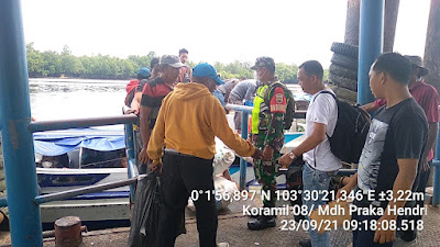 Praka Hendri Babinsa Koramil 08/Mandah Kodim 0314/Inhil tetap  Melaksanakan Penegakkan Disiplin  di Pelabuhan Sembuang  Kelurahan Khairiah Mandah Kecamatan Mandah Kamis (23/09/2021)