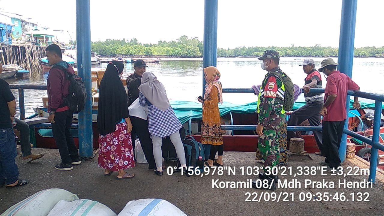 Praka Hendri Babinsa Koramil 08/Mandah Kodim 0314/Inhil tetap Melaksanakan Penegakkan Disiplin di Pelabuhan Sembuang Kelurahan Khairiah Mandah Kecamatan Mandah Rabu (22/09/2021)