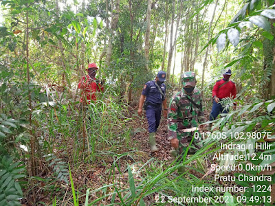 Pratu Candra Winata Babinsa Koramil 05/Gas Bersama RPK Perusahaan melaksanakan monitoring Lahan Konsesi tersebut dari Karhutlah Rabu (22/09/2021)