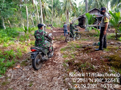 Serda Ratno Babinsa Koramil 11/Pulau Burung Kodim 0314/Inhil Komsos Cegah Karhutlah dan Patroli Rutin Rabu (22/09/2021)