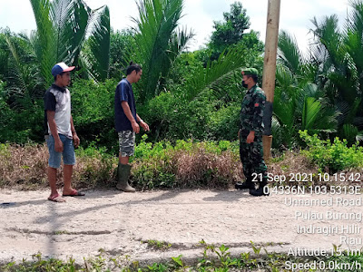 SERIBUPARITNEWS.COM, PULAUBURUNG - Babinsa Koramil 11/Pulau Burung Praka Dedi Hariyawan rutin melaksanakan kegiatan patroli dan sosialisasi karhutla Selasa (21/09/2021)