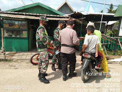 SERIBUPARITNEWS.COM,PULAUBURUNG - Sebagai Bentuk Partisipasi Apter dalam penegakkan disiplin Babinsa Koramil 11/Pulau Burung Kodim 0314/Inhil Serda Suratno bersama Tim Gugus melaksanakan Penegakkan Disiplin Protokol Kesehatan Selasa (21/09/2021)