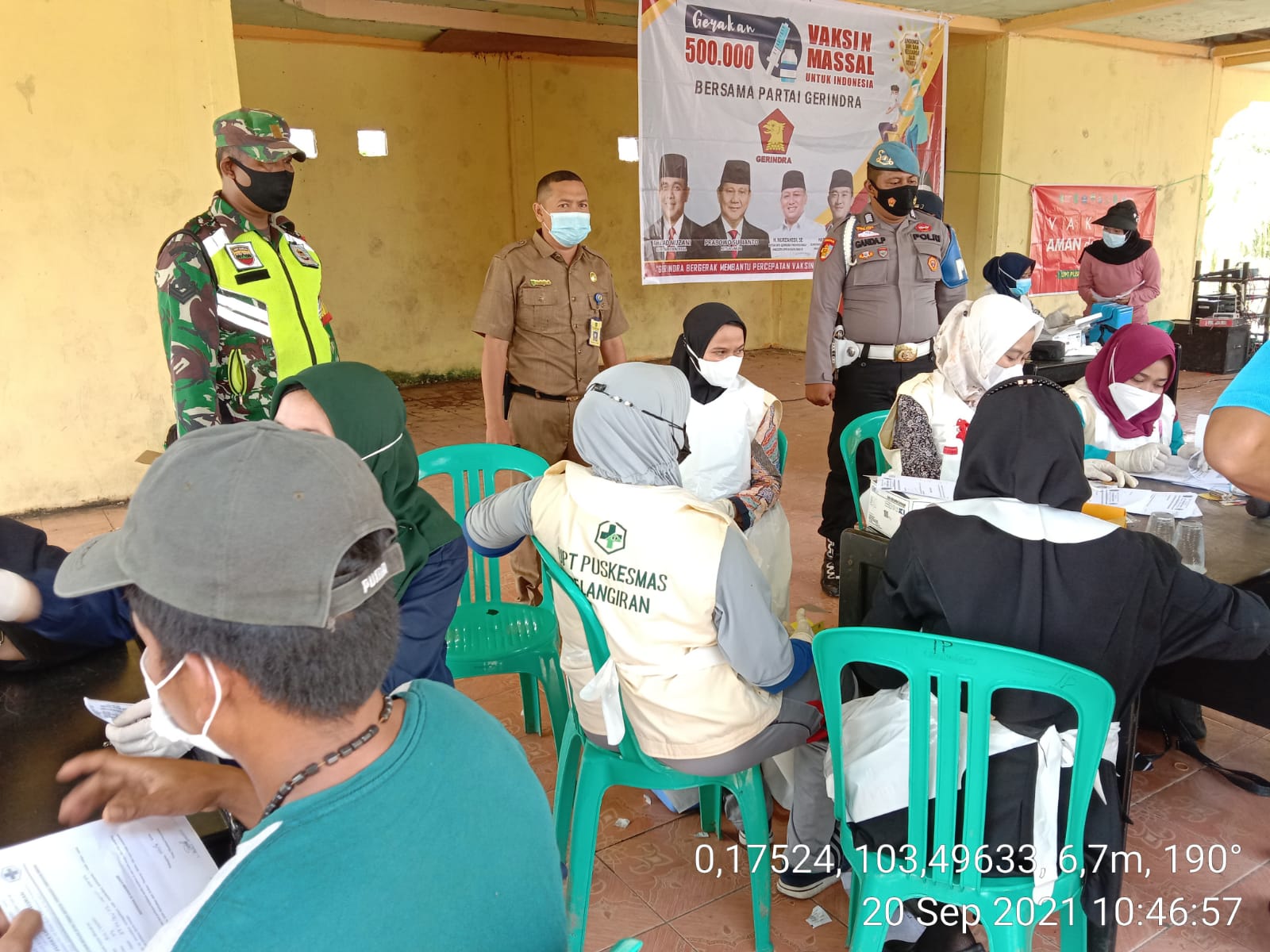 Kegiatan Vaksinasi ini merupakan dukungan partai Gerindra dengan Jumlah 1.000 vaksin dengan dosis 1