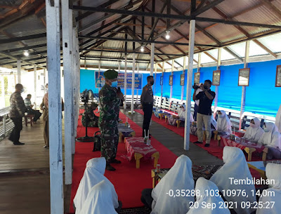Peltu Suriadi Babinsa Koramil 01/Tembilahan Kodim 0314/Inhil Dampingi Pelaksanaan Penyuntikan Vaksinasi Covid-19 di pondok pesantren Al- Imtinan Putri Parit 2 Kelurahan Tembilahan Barat Kecamatan Tembilahan Hulu Senin (20/09/2021)