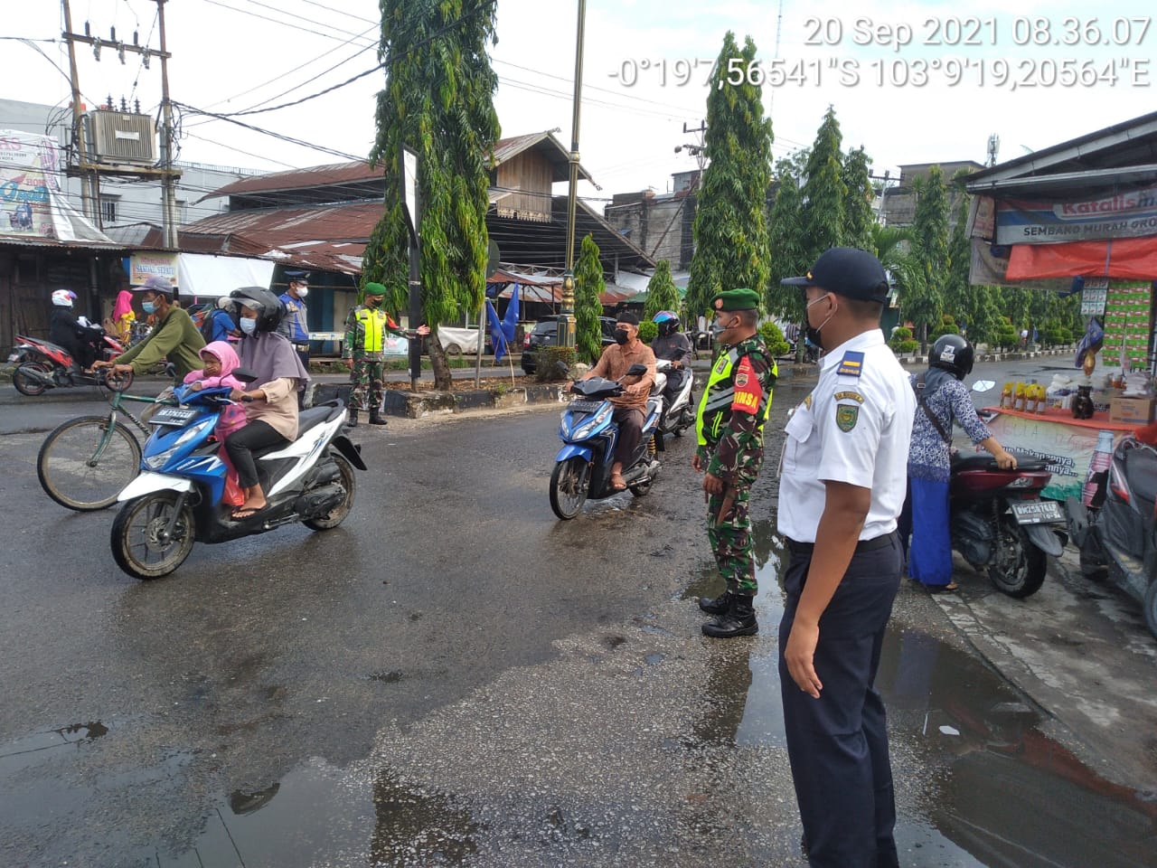 Sertu Surung Simbolon   Babinsa Koramil 01/Tembilahan Bersama Tim Gugus Laksanakan Gakplin  Protkes dan Penyekatan Mobilitas Masyarakat Senin  (20/09/2021