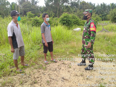 Serka Sugianto Babinsa Koramil 10/Pelangiran Kodim 0314/Inhil Melaksanakan Patroli Karhutlah secara bersama dan Intens Minggu (19/09/2021)