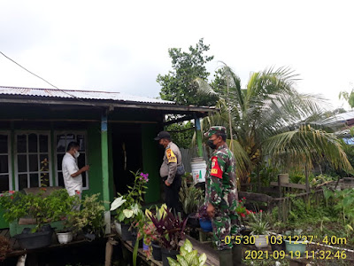 Babinsa Koramil 05/Gas, Serka Sasmito Mendampingi tracking Terhadap Warga yang Kontak Erat dengan Pasien Covid-19 di Desa Belantaraya Kecamatan Gaung Minggu (19/09/2021)