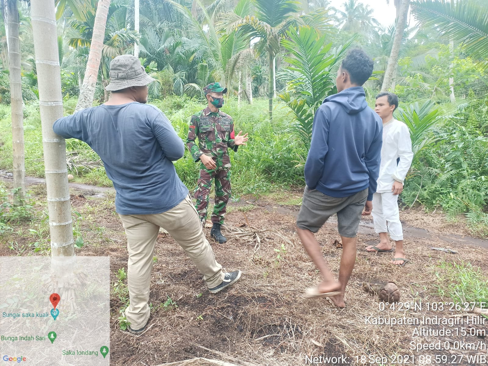 Babinsa Koramil 08/Mandah Kodim 0314/Inhil Praka Darma  melaksanakan komsos berupa patroli dan sosialisasi  Kebakaran lahan dan hutan bersama masyarakat Sabtu  (18/09/2021)
