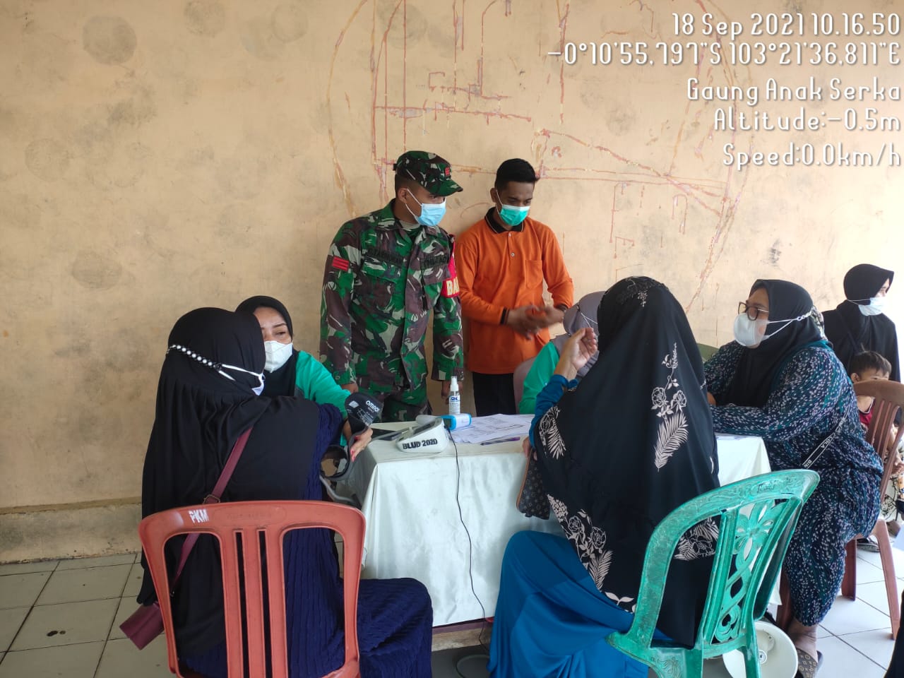 Dalam pelaksanaan Vaksinasi hari ini Babinsa didampingi Tenaga Kesehatan,Perangkat Keluruhan dan Panitia Pelaksana