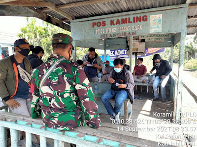 Babinsa fokuskan pelaksanaan protokol kesehatan yang dikonsentrasikan di poskamling kelurahan Pelangiran kecamatan Pelangiran