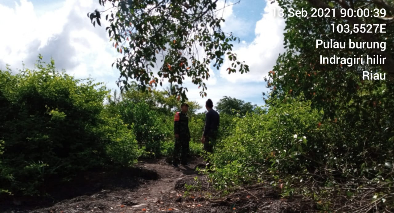 SERIBUPARITNEWS.COM, PULAUBURUNG - Babinsa Koramil 11/Pulau Burung  Praka Dedi Hariyawan masih rutin  melaksanakan kegiatan patroli dan sosialisasi karhutla  Senin (13/09/2021)
