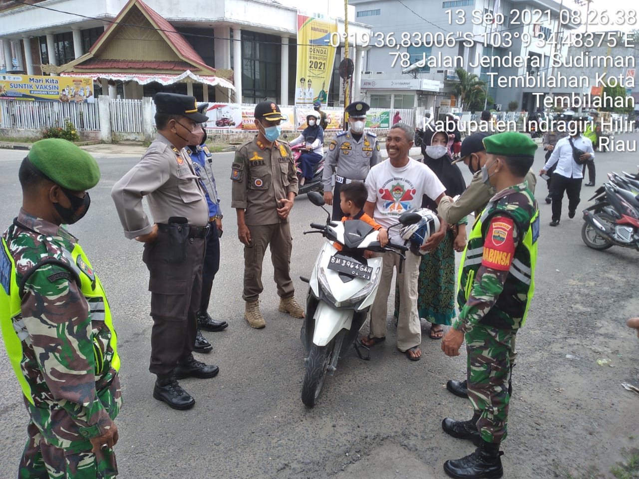 Kopda Komaruddin Babinsa Koramil 01/Tembilahan Bersama Tim Gugus Laksanakan penegakkan disiplin Protokol kesehatan dan Penyekatan Mobilitas Masyarakat Senin (13/09/2021