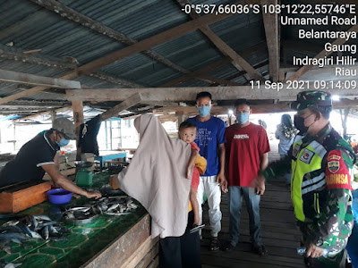 SERIBUPARITNEWS.COM, GAUNG - Guna mencegah Penyebaran Covid - 19 , Babinsa Koramil 05/Gas, Serka Sasmito terus melaksanakan penegakan disiplin protokol kesehatan di kantin pasar Ikan Desa Belantaraya Kecamatan Gaung Sabtu (11/09/2021)