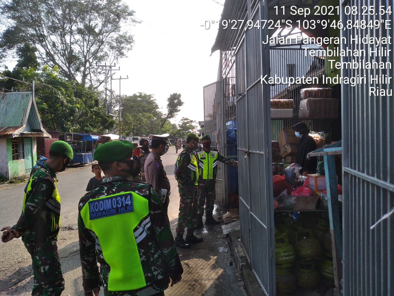 Sertu Jondri  Babinsa Koramil 01/Tembilahan Bersama Tim Gugus Laksanakan penegakkan disiplin   Protokol kesehatan dan Penyekatan Mobilitas Masyarakat Sabtu  (11/09/2021
