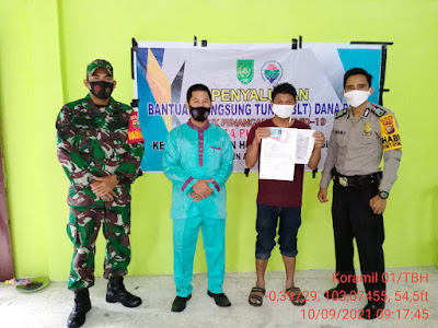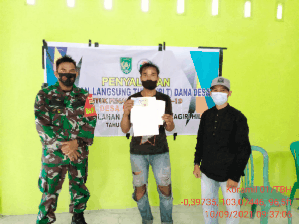 Plh.Kepala Desa Dodi Wahyudi,ST menyampaikan bahwa bantuan yang disalurkan berupa Uang Tunai sejumlah 300 ribu untuk 71 Kepala Keluarga