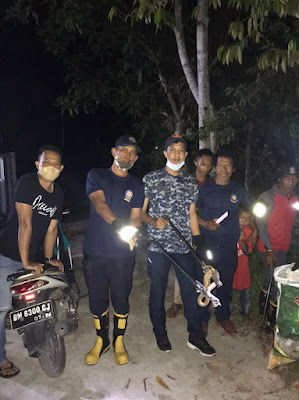 Setelah sampai ke lokasi Komandan Regu 3 Dony Osmond mengatakan kami sangat kesulitan utk mencari posisi ular tersebut karena kondisi Gelab.