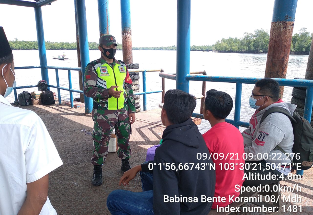 Praka Hendri Babinsa Koramil 08/Mandah Kodim 0314/Inhil Berikan Kesadaran Pahami Protokol Kesehatan kepada Penumpang di Pelabuhan Sembuang