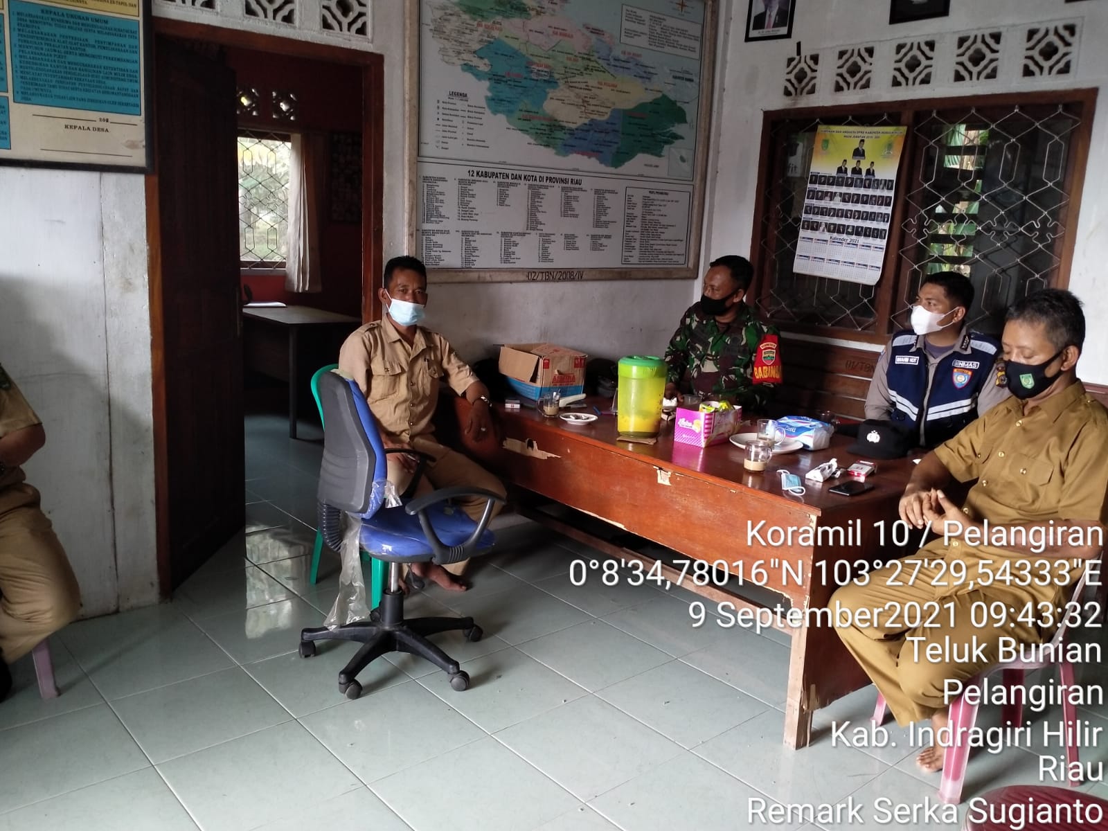 SERIBUPARITNEWS.COM, PELANGIRAN - Sebagai upaya dalam penegakkan disiplin, Minggu inin Babinsa 10/Pelangiran Serka Sugianto melaksanakan Komsos dan Himbauan Protokes Kepada Perangkat Desa  Kamis (09/09/2021)