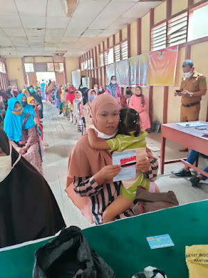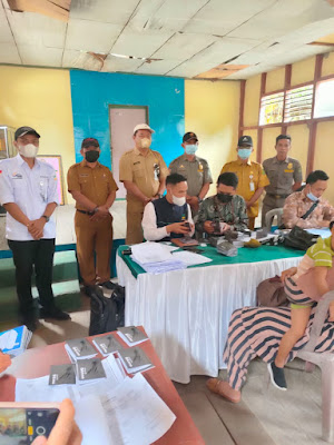 Camat sungai Batang dalam hal ini diwakilkan oleh Sekcam Abu Bakar,SH didampingi Kasi Kesos dan Kasi Paten mengawasi pembagian Kartu Keluarga Sejahtera (KKS) Bantuan Pangan Non Tunai (BPNT) kepada keluarga penerima manfaat Rabu (08/09/2021(