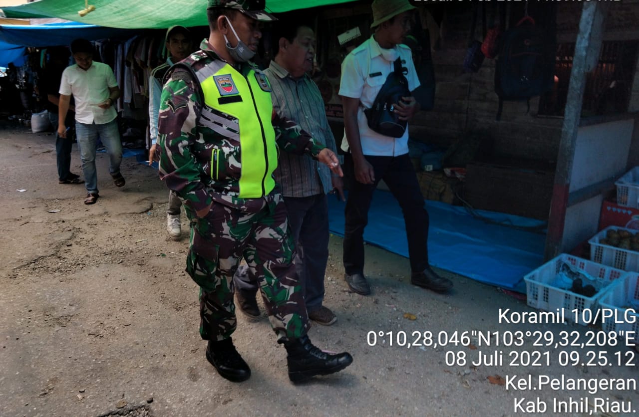 Babinsa fokuskan pelaksanaan protokol kesehatan yang dikonsentrasikan di pasar Kelurahan Pelangiran kecamatan Pelangiran