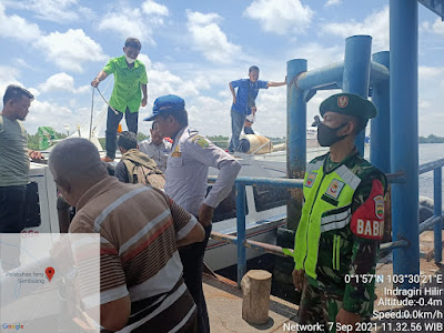 Praka Darma Babinsa Koramil 08/Mandah Lanjutkan Penegakkan Disiplin Terfokus di Pelabuhan Sembuang Kelurahan Khairiah Mandah Selasa (06/09/2021)