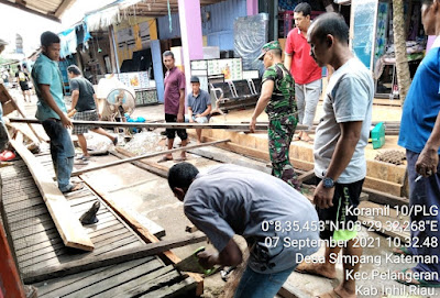 Gotong royong dilaksanakan bersama warga melaksanakan Pembuatan Panggung untuk acara Haul yang dilaksanakan di Desa Simpang Kateman Kecamatan Pelangiran kab Inhil.