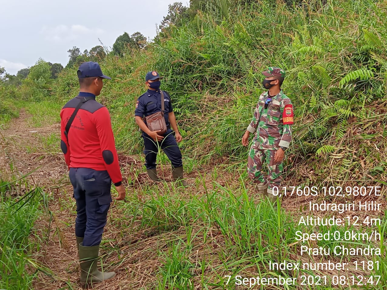 Pratu Candra Winata Babinsa Koramil 05/Gas Bersama Tim  RPK Perusahaan melaksanakan monitoring  Lahan Konsesi  tersebut  dari Karhutlah  Selasa  (07/09/2021)