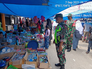 Dipimpin Serma Tota Simbolon Babinsa Koramil 05/Gas Mewajibkan Para Pedagang memakai masker dan Jaga Jarak